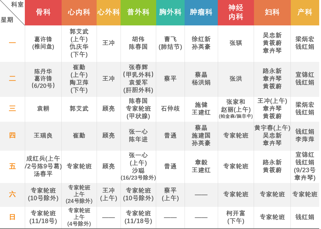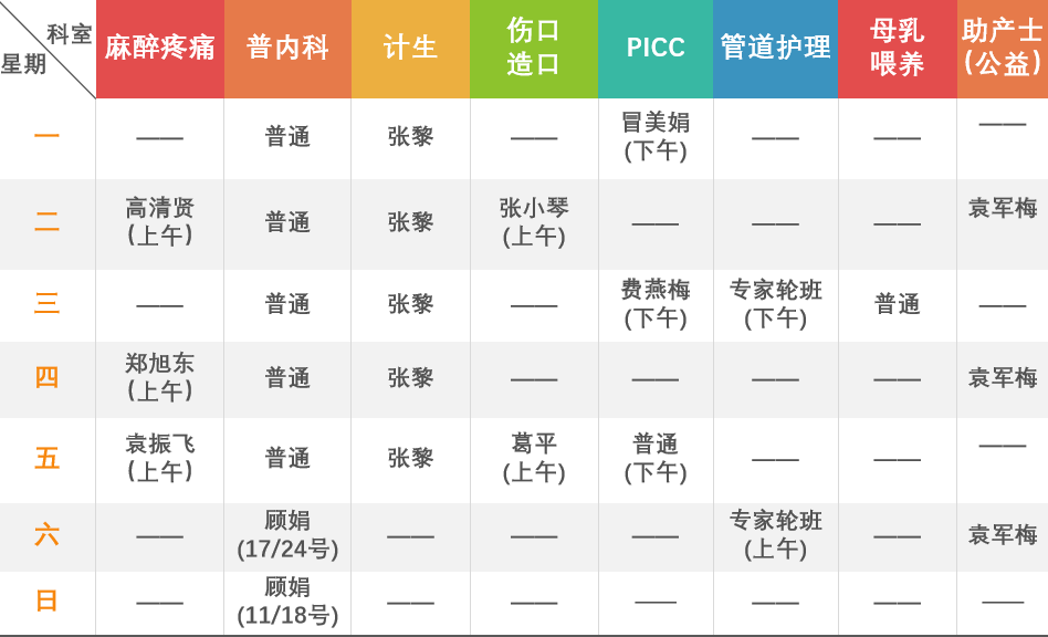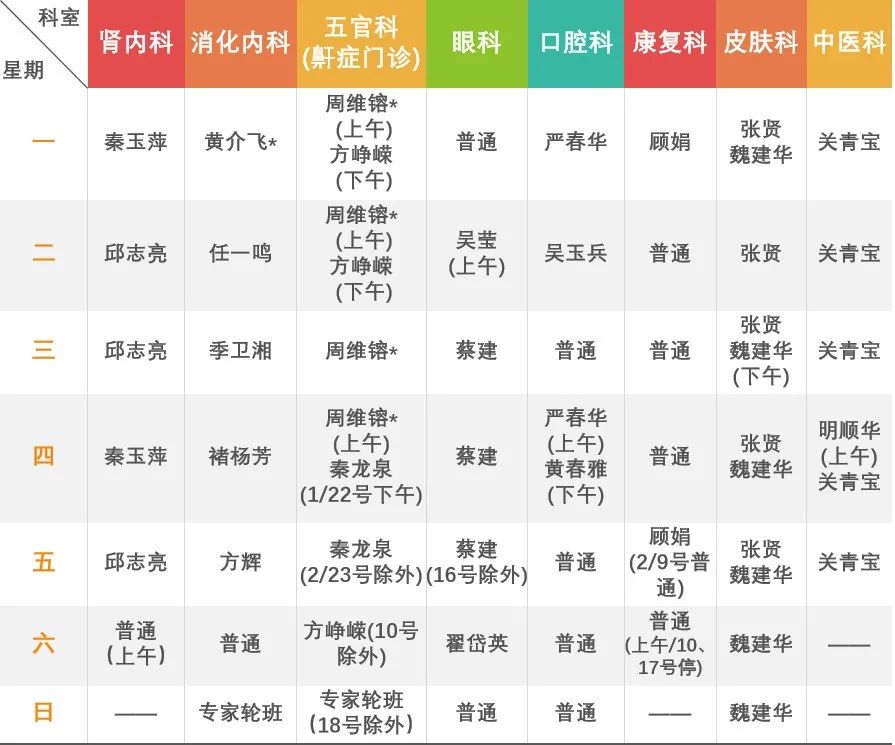 以上排班表僅供參考,各專科出診情況以當(dāng)日門診公示為準(zhǔn)。