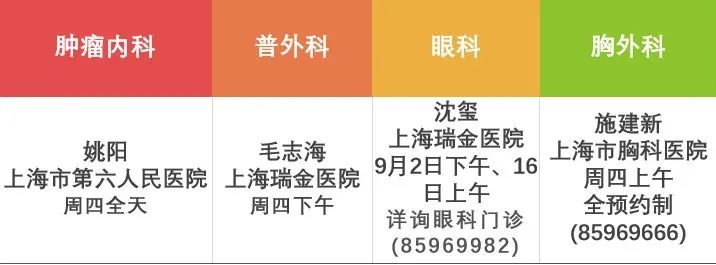 2022年9月專家門診排班看這里!